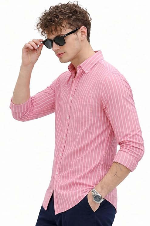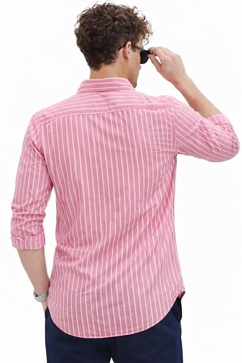 Men’s Casual Printed Striped Stylish Latest Formal Shirt for Men Blue and Pink