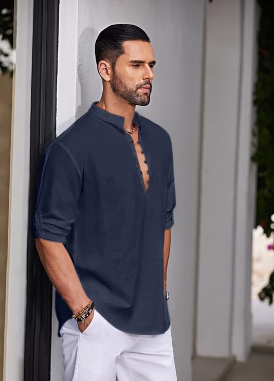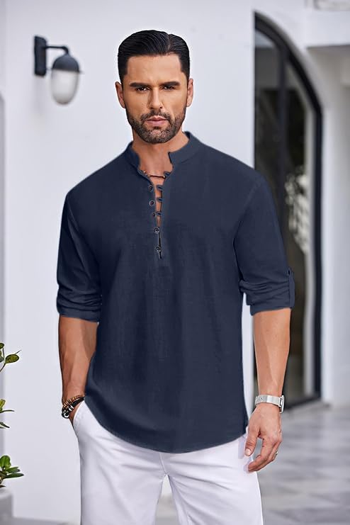 413y9ul6u5lMen’s Straight Fit Cotton Blend Kurta with Foldable Sleeves & Formal Collar – Solid Color